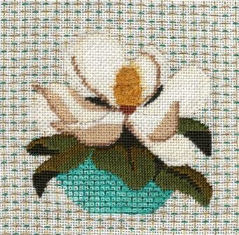HO712 Magnolia, 4 inch, 18 mesh. Free stitch guide