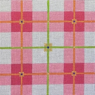 HO2895 Melon Pink Stripe Rnd Ornament, 4 mesh, 18 or 13 mesh